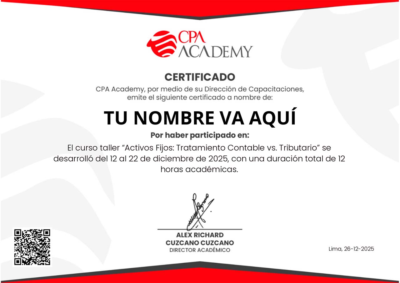 El curso–taller “Aplicación Práctica de la NIC 12: Impuesto a las Ganancias” ha sido diseñado para que el participante resuelva, de forma clara y sustentable, las principales complejidades del impuesto corriente y diferido bajo NIIF. A través de clases en vivo, casos prácticos y una hoja de trabajo en Excel, el profesional fortalecerá su criterio técnico para identificar diferencias temporarias, evaluar activos por impuesto diferido, elaborar conciliaciones y cumplir adecuadamente con las revelaciones, con un enfoque aplicable a la realidad empresarial y a los requerimientos de auditoría.